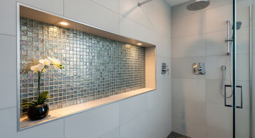 Shower Niches that Sparkle in Benton: Pairing Glass Mosaics with Large-Format Walls